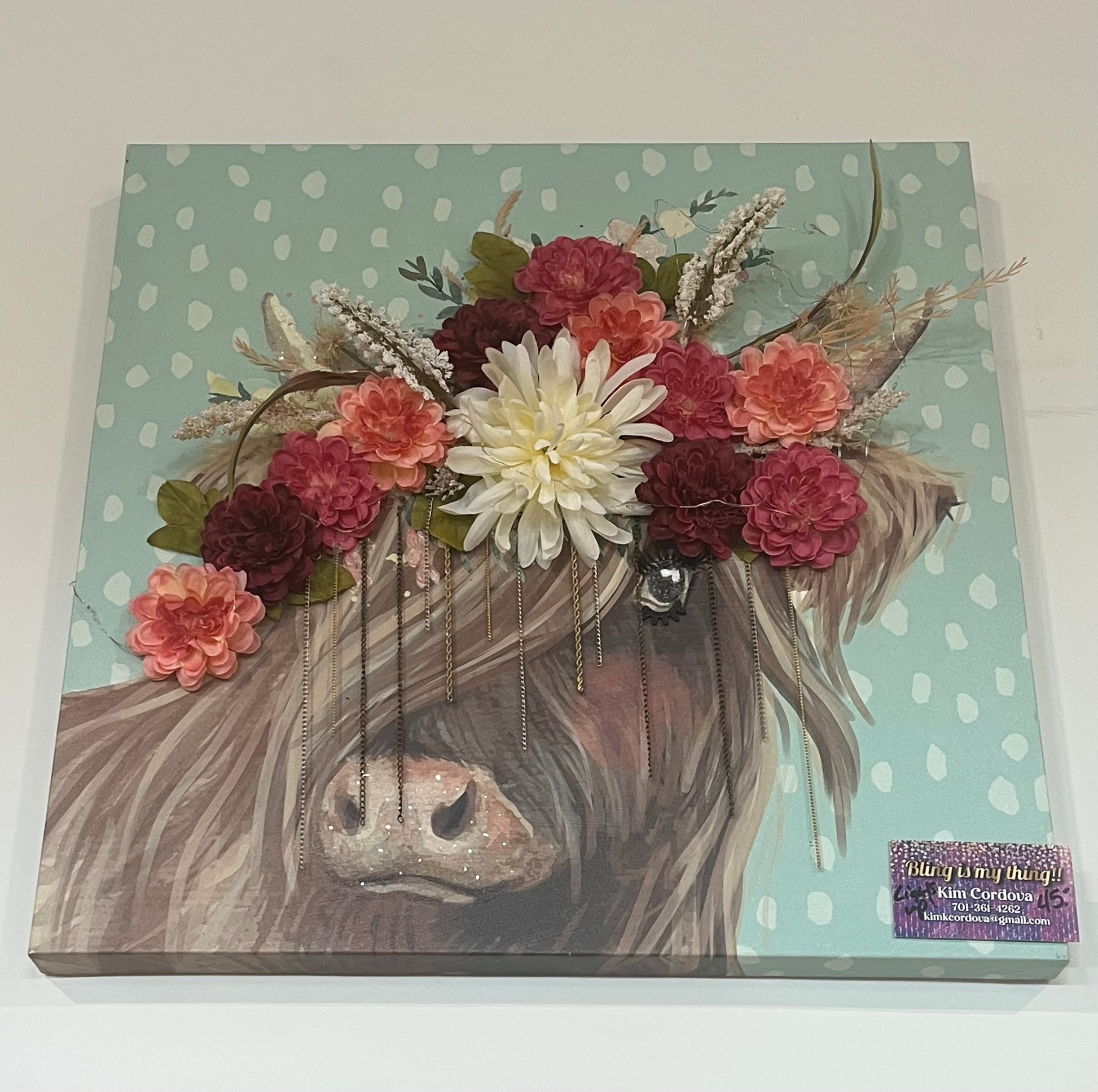 Highland Cow, (green background)