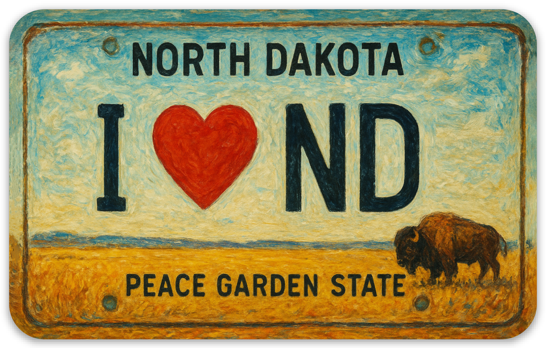 🦬I ❤️ ND – North Dakota Plate Style Sticker (4")